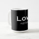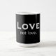 Black mug with "Love, not love..." in white typography that reminds us to choose divine Love rather than egoic love.