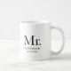 Esta elegante e minimalista caneca negra e branca diz "Sr." numa fonte moderna de luxo, e também tem um lugar para o seu sobrenome e casamento.