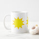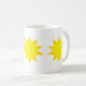 Três sóis amarelos em uma caneca de café assim que em você podem aumentar e brilhar.