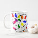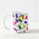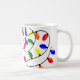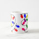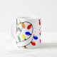 Esta caneca tem uma design de Natal com luzes enroladas em vermelho, azul, amarelo, verde, rosa e roxo.