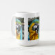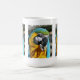 Um design fotográfico de uma arara azul e dourada muito fofa.