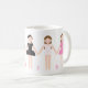 Na moda na caneca de Paris, com uma moça parisiense em suas muitas roupas de dia para noite.