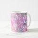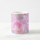 Para a mãe da noiva esta elegante caneca de café floral faz uma recordação única daquele dia especial. O design modelo apresenta um fundo floral moderno de flores cor-de-rosa com as palavras "Mãe da Noiva" em uma tipografia moderna, em ambos os lados da caneca. Projetado pelo artista mundialmente famoso ©Tim Coffey.