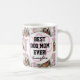 Na moda MELHOR CACHORRO MÃE CADA VEZ caneca de café com uma foto em um padrão ladrilhado. Carregue apenas uma foto de você ou do seu cachorro. Na frente há uma impressão de pata aberta. Todo texto é PERSONALIZÁVEL para que você possa personalizar com seu nome e/ou alterar MOM para MÃE. Presente ideal para Mães de Cão em todo o lado, para aniversários, "aniversários da paternidade de cães", Dia de as mães e Natal.