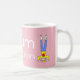 Caneca cor-de-rosa com a mensagem "Mãe num Milhão" em letras brancas. Tem um desenho de uma mãe vestindo jeans azuis, e uma Camisa amarela com uma flor vermelha em pé sobre sua cabeça. Personalize facilmente esta caneca editando o texto do modelo. presente de excelente para um aniversário ou Dia de as mães. Veja meu cartão de Dia de as mães correspondente na minha loja. Obrigados para ver as minhas designs!