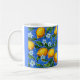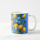 Linda caneca de café azul e amarela com limões. Que brinde para a mãe por tudo que ela faz cozinhar e cozinhar na cozinha. Se a vida te der limões, dê-os às Mães Mães e ela tem certeza de fazer algo especial. Limonada, frango de limão ou torta de limão.