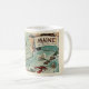 Um mapa de cartões postais de colheita divertido do Maine reposto numa caneca.