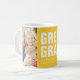 Caneca de café impressa personalizada com fotos e mensagem de Dia de as mães. A design de tipografia moderna e velha lê "Maior. Vovó." ou use as ferramentas de design para adicionar seu próprio texto. Clique em personalizá-lo para alterar a cor de fundo e editar fontes e cores de texto, mover coisas ou adicionar mais fotos para criar seus próprios presentes de Dia de as mães exclusivos para vovó e excelente-vovó!