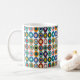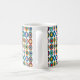 Esta caneca tem um design Bauhaus de ovais com quatro camadas de espessura num campo de branco. Quer o mesmo design com cores diferentes? Me mande mensagem.