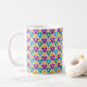 Esta caneca tem um design de Bauhaus repetindo triângulos em ouro, turquesa, chalé, roxo e ouro leve. Se você gosta do design, mas prefere cores diferentes, me mande mensagem.