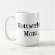 De " caneca branca da mamã Rottweiler" com rotulação preta e um coração vermelho brilhante na extremidade.