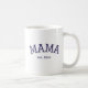Comece seu dia com um gole de amor 💙 Esta caneca personalizada "Mamãe" apresenta uma inscrição clássica no estilo universitário em marinho com uma sombra de cinza e seu "est" personalizado ano. Um presente perfeito para qualquer mãe orgulhosa, quer ela tenha acabado de se juntar ao clube ou seja uma profissional experiente. Faz um Dia de as mães, um chá de fraldas ou um presente de feriado.