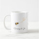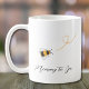 Esta caneca de café é decorada com abelhas melíferas e "Mamãe a abelha" na tipografia de na moda. Facilmente personalizável com seu monograma. Faz um presente encantador para a futura mãe. Original Watercolor © Michele Davies.