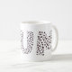 Caneca do dia das mães engraçada e fofa com um texto de mãe escrito em corações.