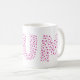 Caneca do dia das mães engraçada e fofa com um texto de mãe fofa escrito em corações.