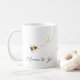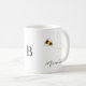 Esta caneca de café é decorada com abelhas melíferas e "Mama to Bee" na tipografia de na moda. Facilmente personalizável com seu monograma. Faz um presente encantador para a futura mãe. Original Watercolor © Michele Davies.