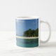 Mañagaha é popular entre os turistas de Saipan como destino de viagem diária devido às suas praias arenosas largas e a diversas atividades marinhas. Esta foto mostra uma de suas praias cercada por água turquesa e céu azul.