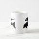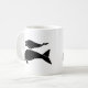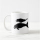 Silhuettes de peixe-boi em fundo azul-oceânico.