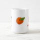 Tangerina ou fruta de citrinos de mandarina com folha verde e gotas de água numa pele isolada sobre fundo branco. Chá ou caneca de café. Você pode mudar dois textos de modelo de forma independente: "Eu bebo suco" e "Deixe-os pensar assim". Divirta-se.