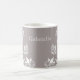 Mangueira doce e delicada, com um fundo de cinza empoeirado, borboletas de marfim e talhos de videira florais. Esta elegante caneca floral é perfeita para o bebendo da sua bebida quente favorita com um toque de esférula. Fácil de personalizar, basta adicionar o texto personalizado de sua escolha nos campos de texto fornecidos. Clique no botão "Personalizar a TI" para encontrar opções adicionais de personalização.