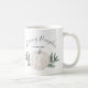 Manhã Bonita, a caneca de outono da Pumpkin com nome, apresenta a tipografia moderna da escrita e uma abóbora de aquarela pastel com folhas de outono num fundo branco.