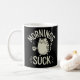 "Manhãs Suck" - para aqueles que precisam de um café extra (ou três) para sobreviver às primeiras horas. Negrito, relacionável e perfeito para qualquer pessoa que não seja uma pessoa matinal! Um chato divertido para começar o dia com uma risada.