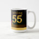 A caneca de aniversário de 55 anos do homem com números de coroa real e ouro em fundo preto e ouro.