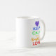 Celebre o orgulho com este design divertido que destaca a famosa frase de propaganda britânica, que aqui lê "Manter Calmo e Compartilhar Amor" no mesmo estilo poster, toda letra maiúscula. As palavras estão em cores arco-íris e o ícone da coroa foi substituído por um coração roxo. Esta design alegre é excelente para espalhar o amor entre a sua comunidade. O amor é o amor.