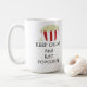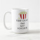 Fique calmo e coma pipoca. A tigela de pipoca a balançar-se com pipoca quente e picante.