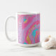 Um padrão de mármore abstrato mesmerizante com vibrantes espirais cor-de-rosa, roxo e turquesa acentuado com uma luxuosa veia de ouro. Esse sonhador, design fluido capta a essência de doces líquidos ou nebulosas cósmicas, com formas de fluxo orgânico que criam senso de movimento e profundidade. Personalize com um nome.