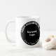 Marca comercial em forma redonda a preto na caneca personalizável. Personalize-o carregando o logotipo da sua empresa, digitando seu nome de empresa, cidade ou cidade e estado. Você pode incluí-lo em seus produtos de promocional, oferecer itens ou presentes aos seus clientes ou clientes, uma estratégia de marketing para anunciar sua empresa ou promover sua marca. Mug personalizável que você pode usar para criar reconhecimento de nome de marca. Mug para sua comida como compro de café, restaurante ou restaurante. Verifique a aparência dos lados frontal e traseiro após carregar o logotipo e os textos de digitação. Se a aparência lhe agrada, você pode colocar seu pedido agora. Se precisar redimensionar e reposicionar o logotipo e os textos, ajuste na ferramenta design.