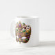 This coffee mug is shown in white with a Mardi Gras mask art print.