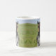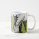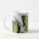 Fotografia de uma cinza está pastando com um potro de baía ao lado dela, preso no pescoço. Imagem impressa em ambos os lados da caneca.