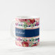 Caneca De Café Marinho Azul Stripe Borgonha Floral Nome Personali