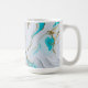 Esta caneca é uma obra-prima. Apresenta superfícies de mármore líquido, luxuosas e coloridas, e uma textura de mármore branco de abstrato de ouro turquesa de arte fluida. A design é uma bela obra de arte, feita com cuidado. Combina elementos como tinta, líquido e cor de turquesa de forma elegante e fascinante. No geral, tem um olhar visualmente cativante, porém organizado e aleatório. É o presente perfeito para aqueles que procuram algo verdadeiramente especial.