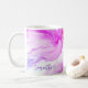 Mármore roxo rosa, personalizado e fluido nome com caneca de café cardíaca.