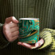 Caneca De Café Mármore Líquido Verde e Dourado