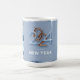 MÚG DE CAFÉ PERSONALIZADO DE DESIGN FLORAL BRANCO AZUL PARA NOVO ANO