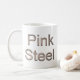 As canecas de aço cor-de-rosa são para beber café, beber chocolate quente e beber forte que gostam da cor rosa. Aço rosa é arte caligráfica original Steamy Raimon.