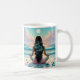 Linda arte ai retratando uma linda mulher meditando na praia com pina e nuvens azuis, ondas oceânicas, areia branca e vidro marinho.