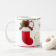 Meias bonitas cheias de presentes com mensagem de feriado feita por mim.