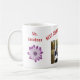 Uma caneca bonita, moderna e elegante de apreciação de professores com as palavras "Melhor Professora em Composição" + um nome e foto personalizáveis, duas flores roxas e uma maçã. Você também pode mudar as palavras para "Melhor Professora Nunca" ou "Melhor Professora de Arte Nunca" se desejar (a versão de arte funciona com a foto certa, já que o modelo tem aquelas belas flores).
