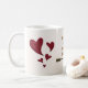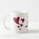 Você está procurando um item de presente especial para sua irmã? Esta caneca apresenta um design de corações pintados de vermelho brilhante junto com uma seta dourada que suporta as palavras "Irmãs são Amigas Para Sempre". A coleção de corações de vários tamanhos aparece em ambos os lados da caneca de café ou chá da manhã e a seta com texto é apresentada no centro. Tanto o texto quanto a cor de fundo bege claro podem ser personalizados para atender às suas necessidades.