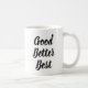 Boa Melhor Mug De Café Motivacional. Um simples design com a tipografia de script que diz "Bom Melhor" em preto em branco. O texto pode ser facilmente personalizado. Um doce lembrete para você. Uma maravilhosa ideia de presente de Motivação da Manhã para sua família e amigos.