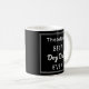 Surpreenda o 'Melhor Pai de Cachorro' com esta caneca personalizada, com uma foto favorita de seu cachorro e o nome do animal de estimação. Personalize o outro lado com o nome do pai do cão, acima da homenagem 'Melhor Pai de Cachorro'. O fundo preto elegante forma um pano de fundo na moda para o design. Um dom ideal de manutenção e Dia de os pais para os donos de cães devotos.