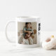 Esta caneca de café fotográfica moderna é o melhor presente para seu padrasto, pai bônus, ou como um pai para seu filho. A caneca ostenta a mensagem mais sentida 'PAI MELHOR EVER BONUS' e pode ser personalizada com sua foto favorita da família e personalizada com seu nome infantil.