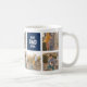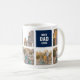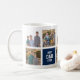Uma caneca de colagem de fotos esportivas com as palavras "Melhor Pai Nunca" em uma fonte de estilo colegial varsity contra cores quadradas editáveis que você pode mudar de azul para qualquer cor escolhida (clique em personalizar, selecione as camadas de retângulo e altere cada cor de preenchimento). Perfeito como presente para Dia de os pais de aniversário de pai. Fotografia de espaço reservado por © Storytree Studios, Stanford, CA *Note que a marca de água Zazzle que aparece na visualização de zoom NÃO aparecerá no produto impresso final. © Rosewood e Citrus