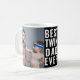 Pai alegre com uma caneca de fotos gêmea! Carregue facilmente as suas duas fotografias e edite os nomes dos modelo para os nomes dos seus gêmeos. Clique em 'Personalizar este modelo' para carregar as suas fotografias. Se as imagens precisarem ser reposicionadas um pouco, basta 'Clicar para personalizar mais' (na parte inferior da área de upload da imagem), você pode digitar a design do Zazzle e fazer seus ajustes. O Melhor Pai Gêmeo De Foto.