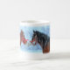 O cavalo dois aprecia um momento em uma manhã nevado do inverno