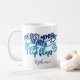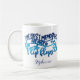 Esta caneca de café de verão divertida apresenta a imagem de texto "As melhores memórias são feitas em Chinelos" em azul-brilho ombre e personalizada com seu nome, ou apague o nome para uma aparência limpa.